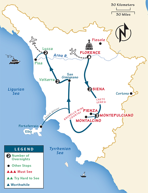 - 8 days, add: Montepulciano, Pienza, and Montalcino