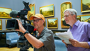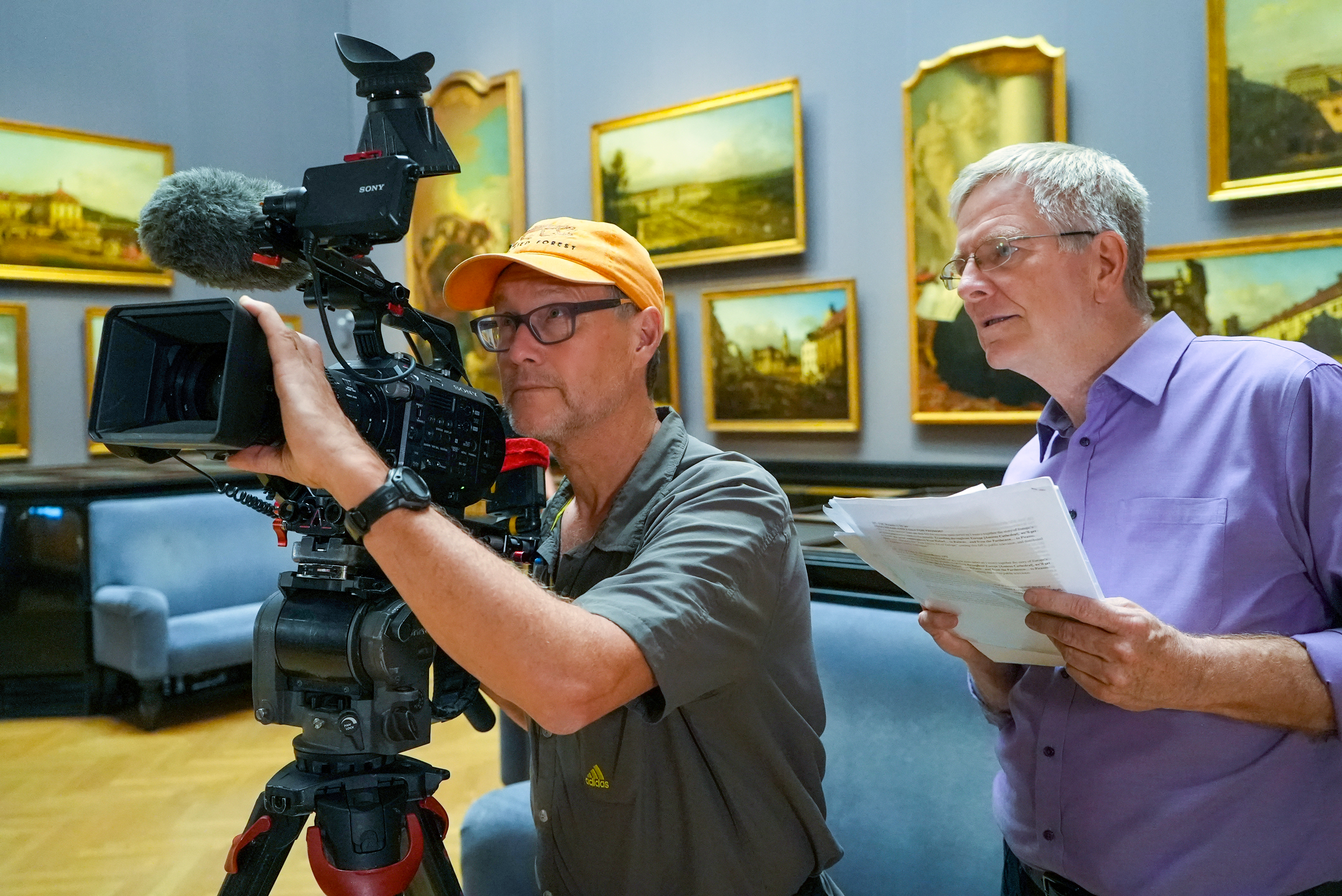 Rick Steves with cameraman Karel Bauer at the Kunsthistorisches Museum in Vienna.