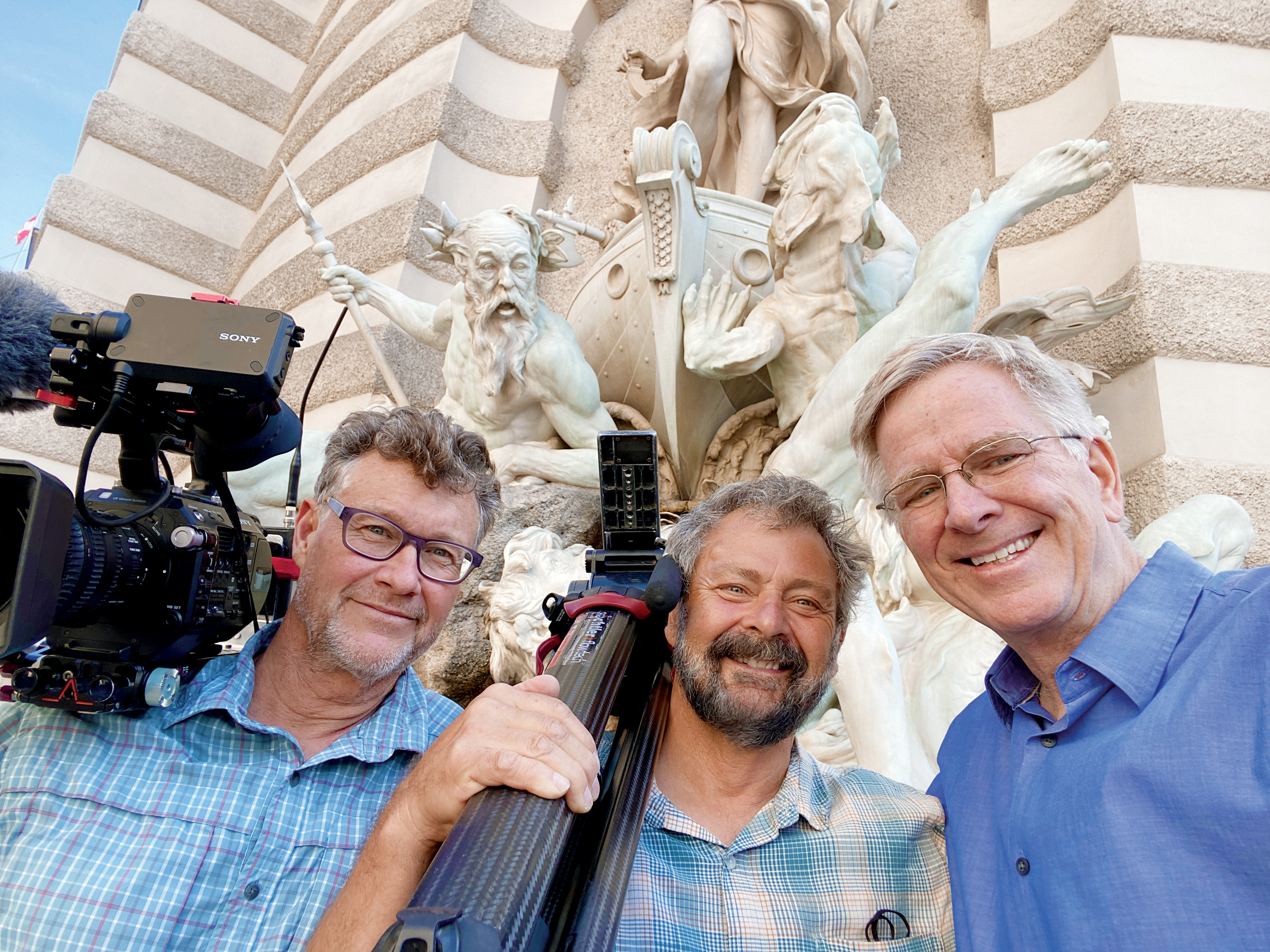 Cameraman Karel Bauer, Producer Simon Griffith, and Rick Steves in Vienna, Austria.
