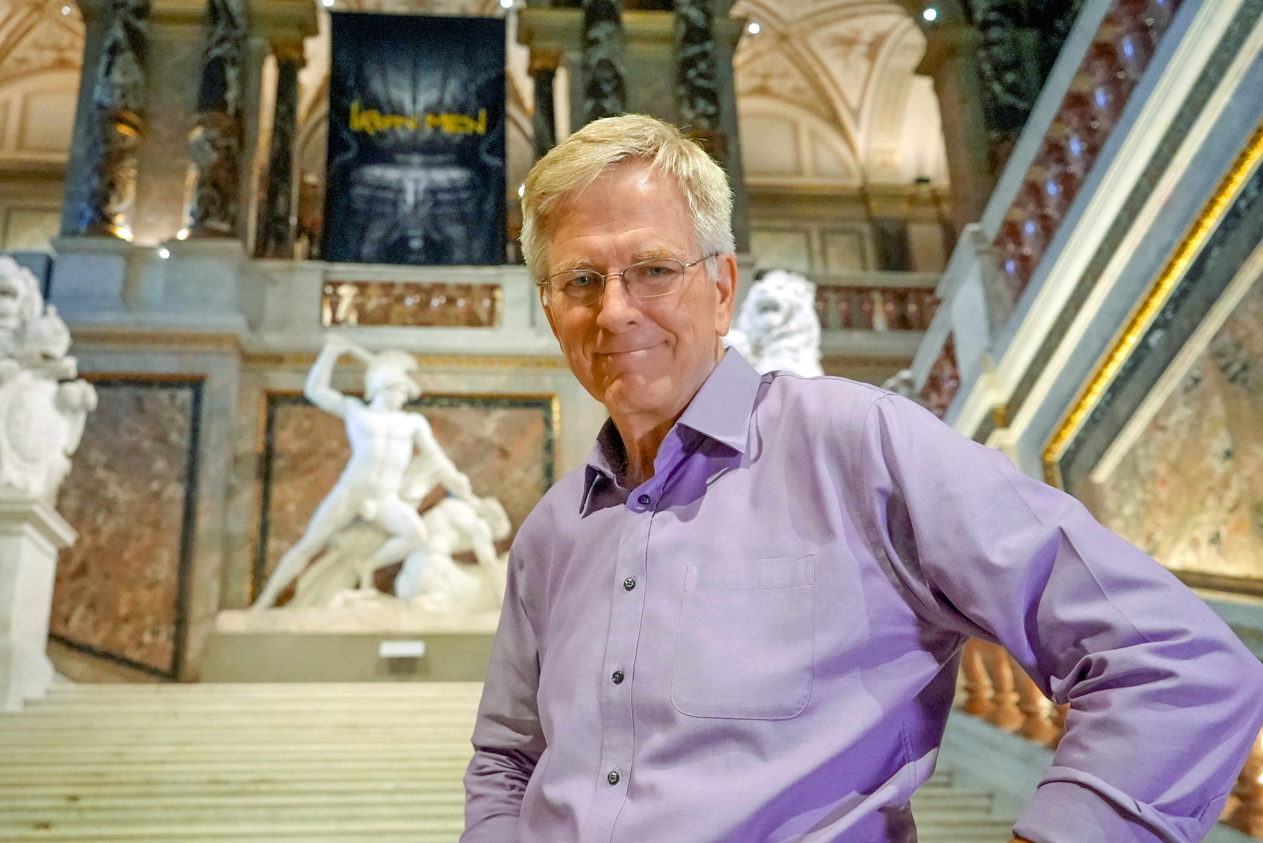 Rick Steves on the Grand Staircase at the Kunsthistorisches museum in Vienna.
