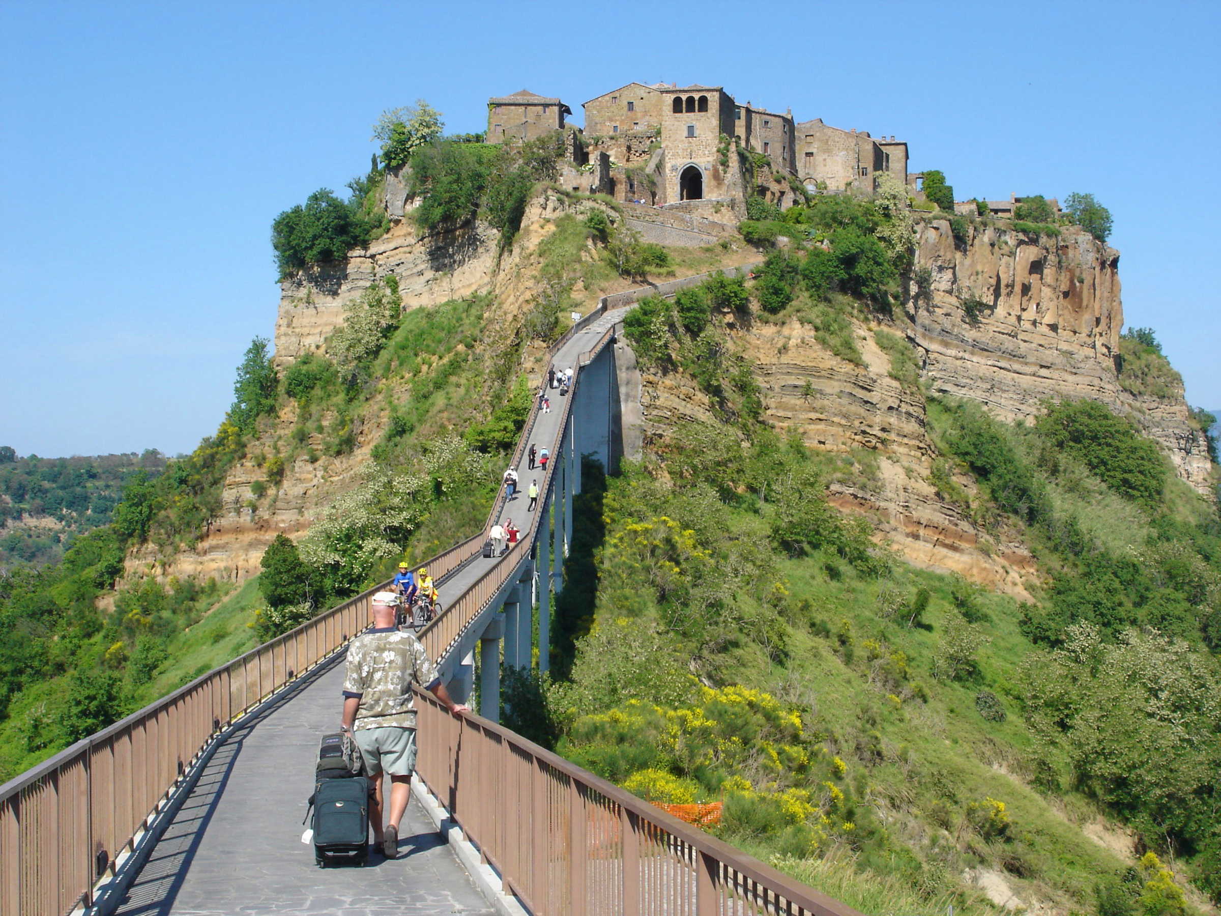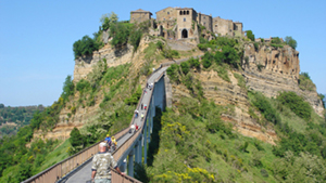 Walking the bridge to a classic Italian hill town, Civita di Bagnoregio in Italy.