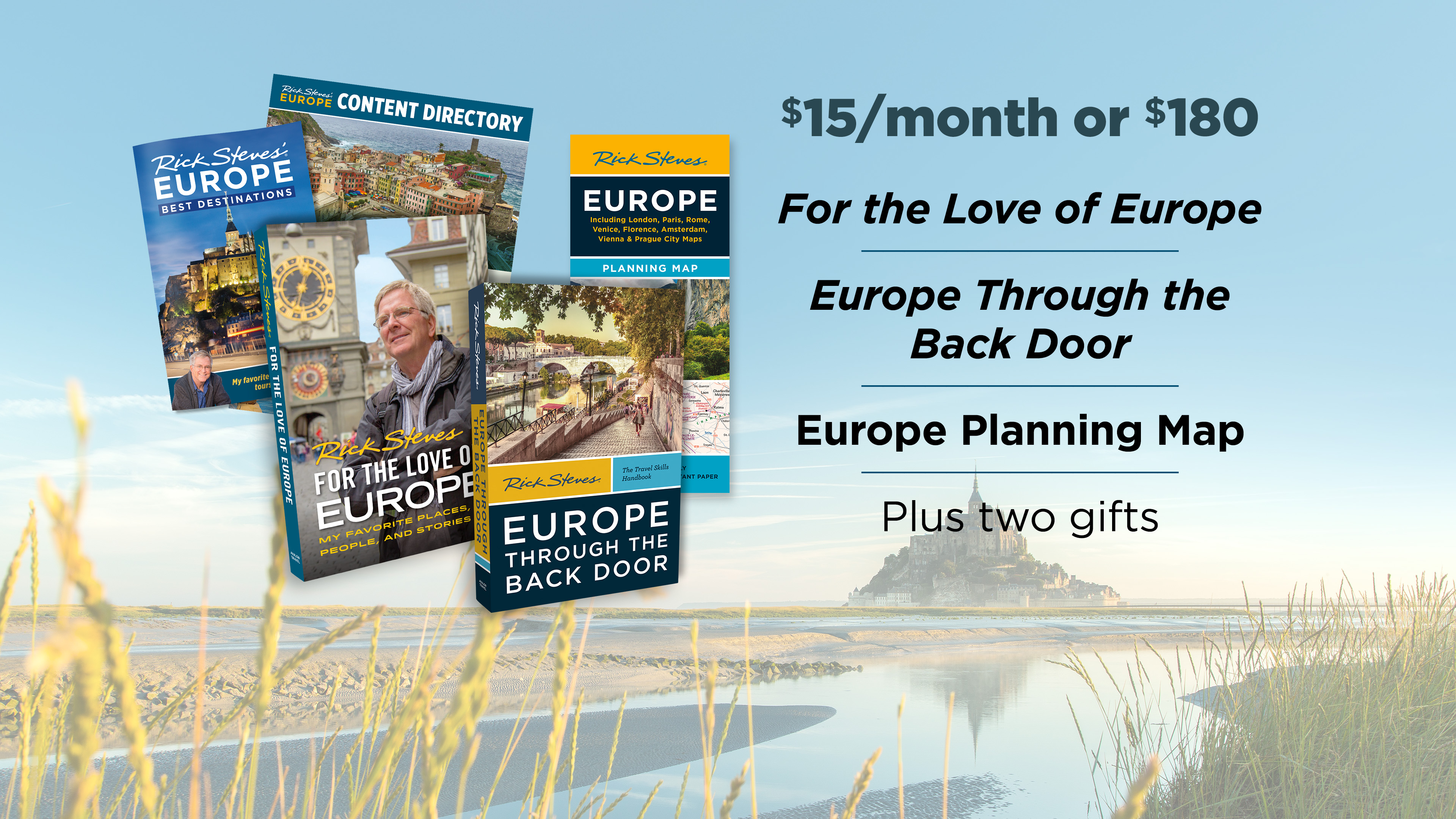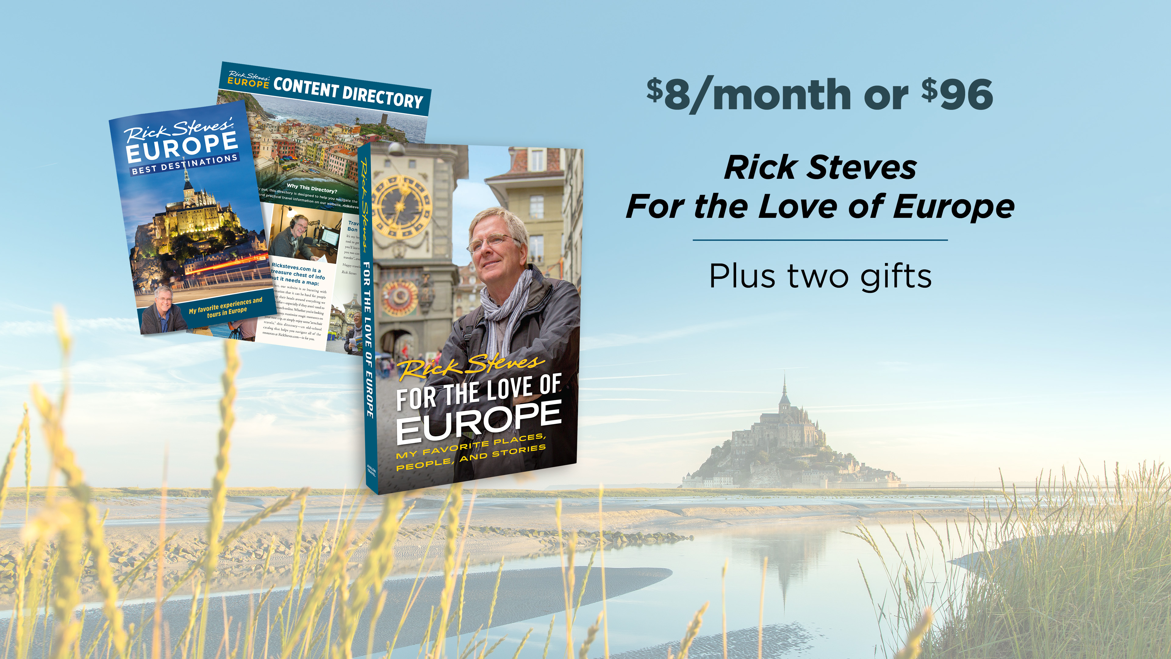 $96/$8 per month Pledge Level Rick Steves