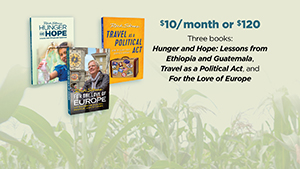 The program is also designed to be a teaching aid for any organization in the US fighting hunger and extreme poverty, to use as they like. We already have a team (including the UN World Food Program, the Gates Foundation, World Vision, Bread for the World, and the Lutheran Church, among others) that are working to bump up viewership, host viewing parties, and use the program or parts of it in their promotional work. My hope is that it will be used in schools and universities as an introduction to this topic. "Hunger and Hope" has been cut into 10 short video clips for teachers to use (easily accessible by searching "hunger" at Classroom Europe). The entire program is streaming for free at ricksteves.com and a PDF of the 80-page "Hunger and Hope" book is also available free at ricksteves.com.