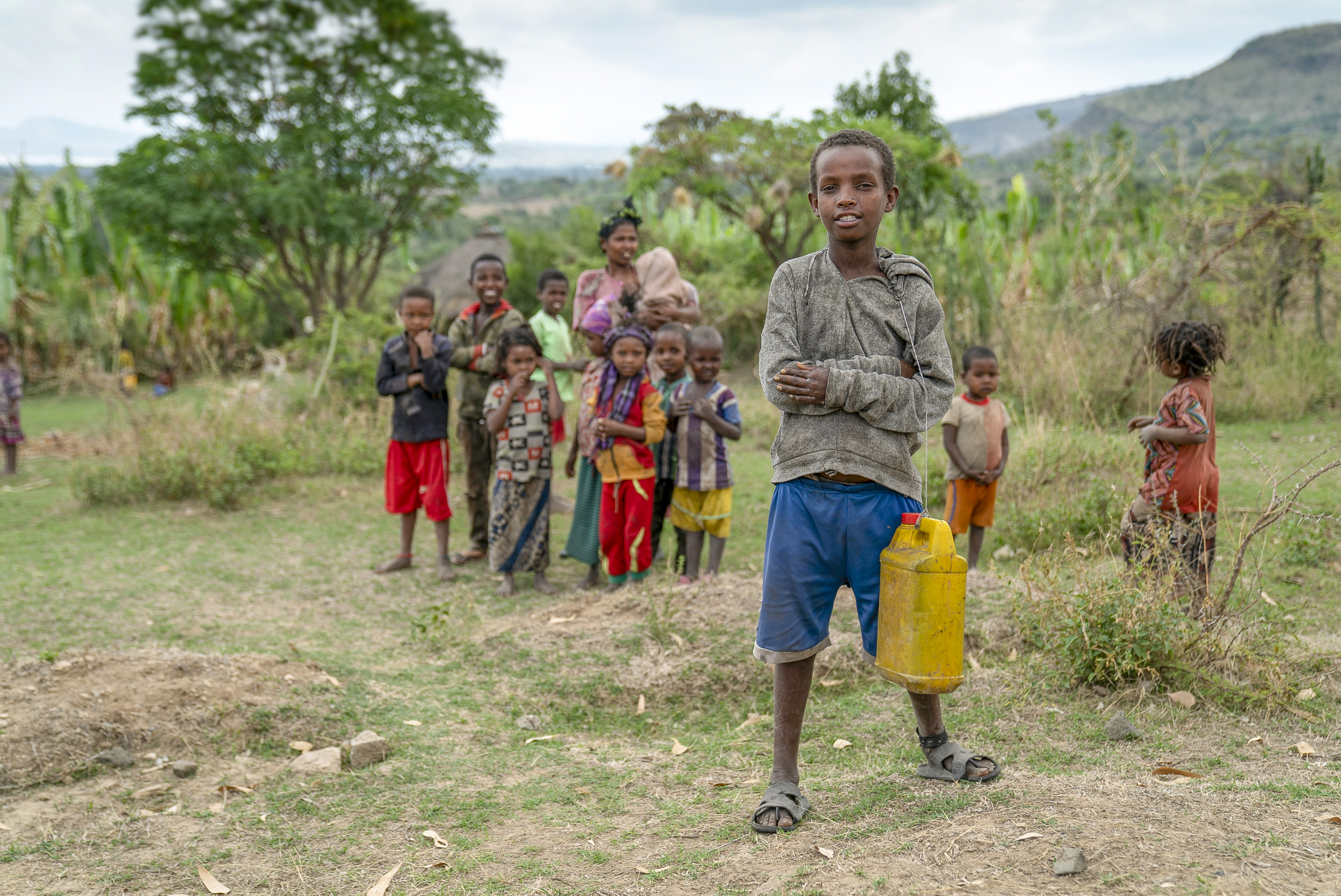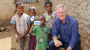 Rick with village kids in Ethiopia's Tigray region. Download image