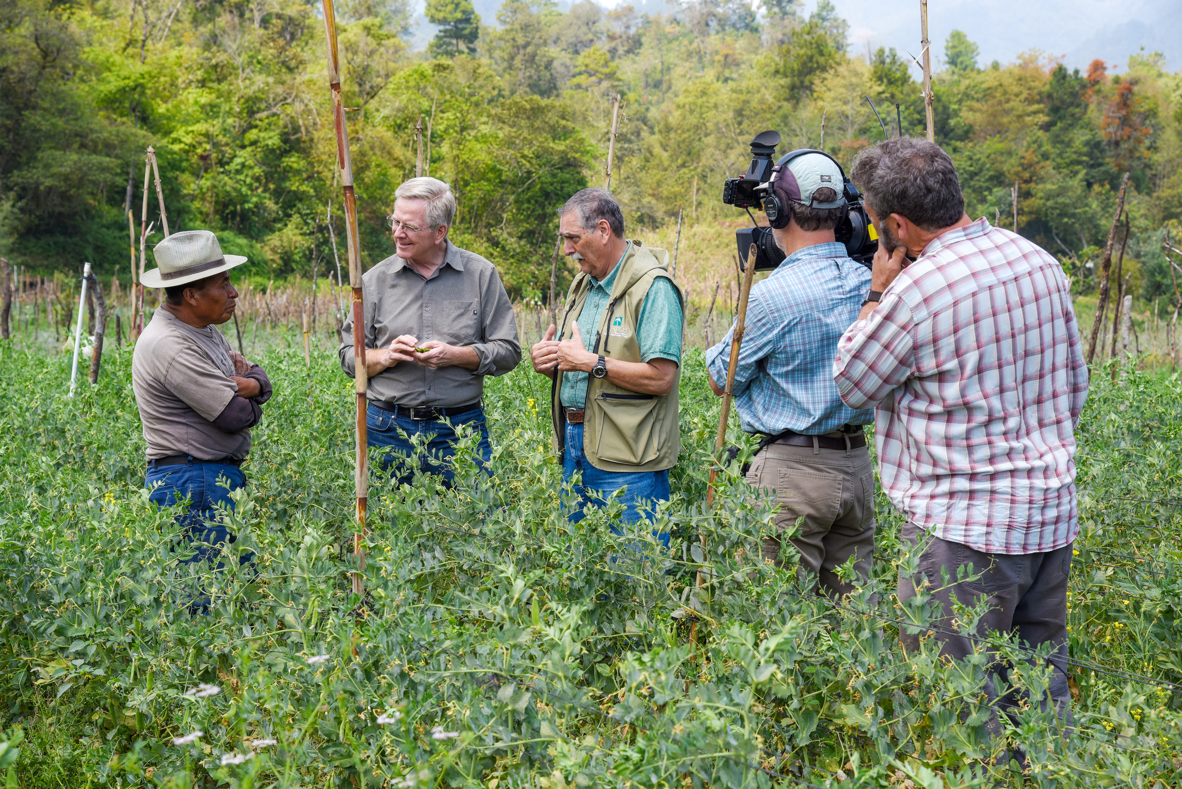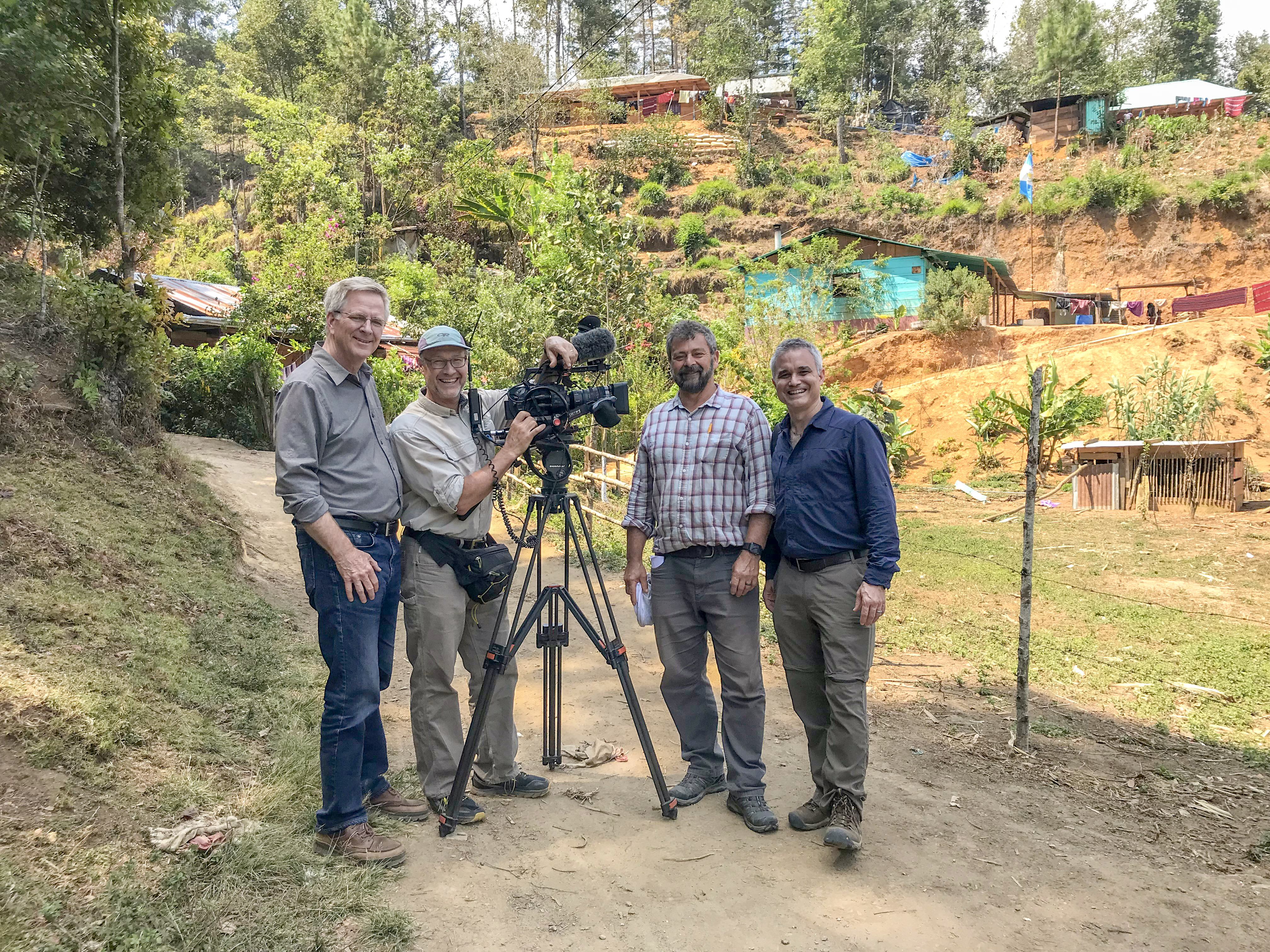 Rick and TV crew with Chris Megargee of Agros International, in El Paraiso, Guatemala. (Photo: Agros International) Download image