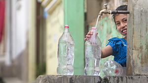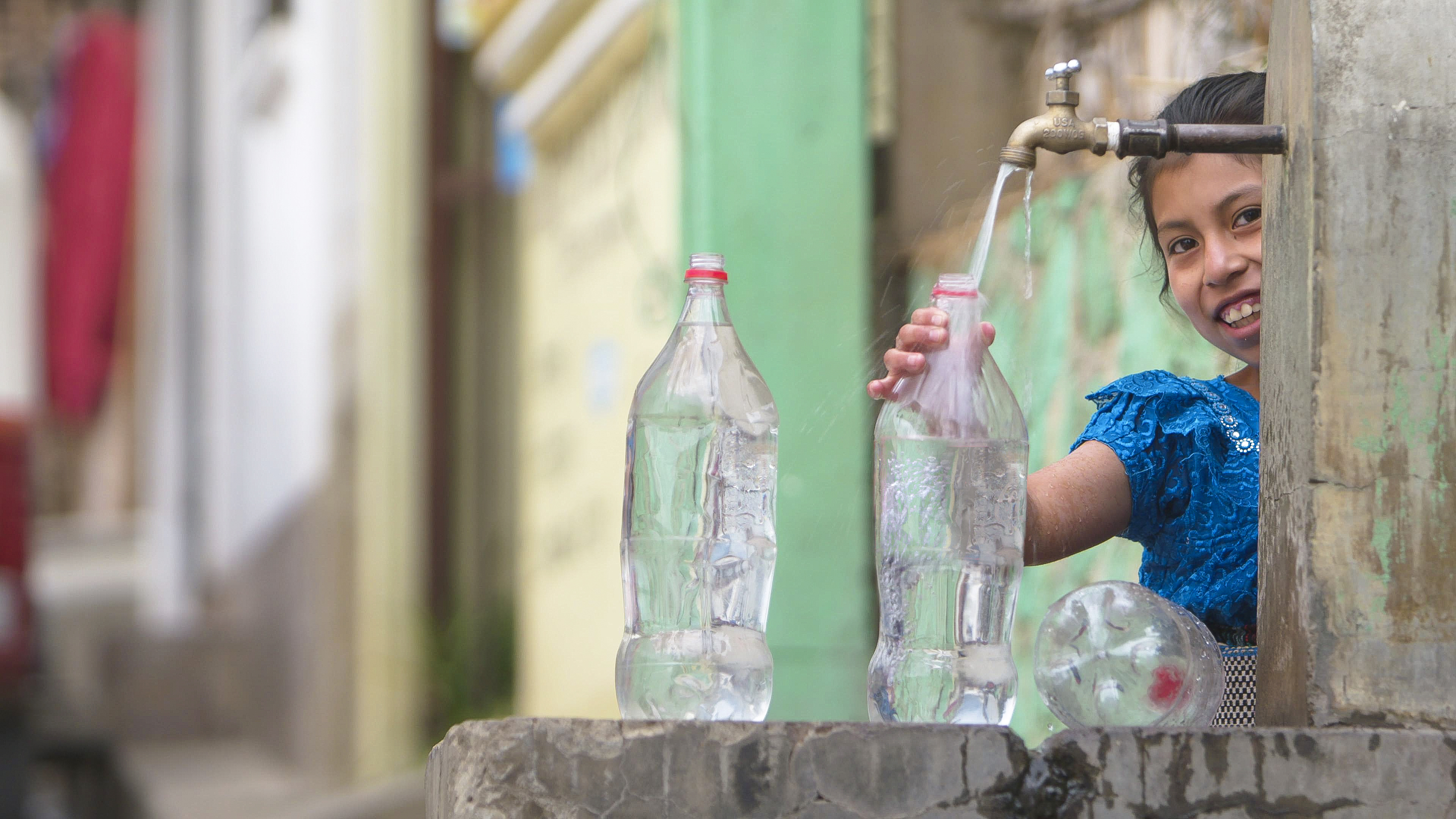 Girl filling a water bottle in San Pablo La Laguna, Guatemala. (Photo: Sean F. White ) Download image