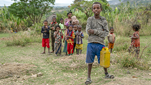 Child making the trek to fill a water bottle near Hawassa, Ethiopia. (Photo: Sean F. White) Download image