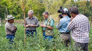 Rick, his crew, and a translator "walk through money" on Pedro's snap pea farm in Guatemala. (Photo: Agros International) Download image