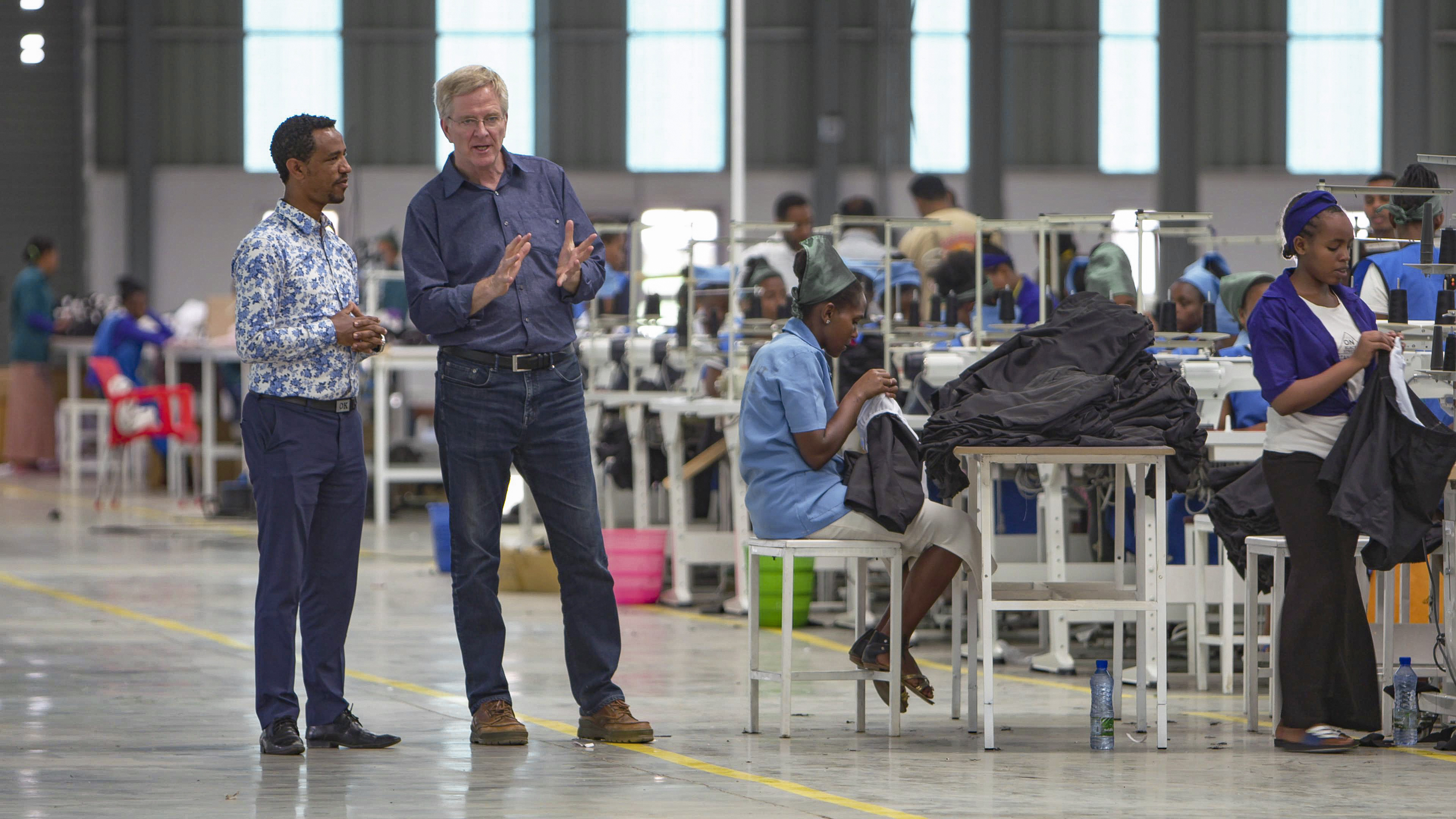 Rick learning about Ethiopia's growing economy at the Hawassa Industrial Park. (Photo: Sean F. White) Download image