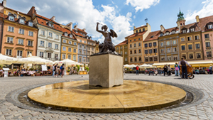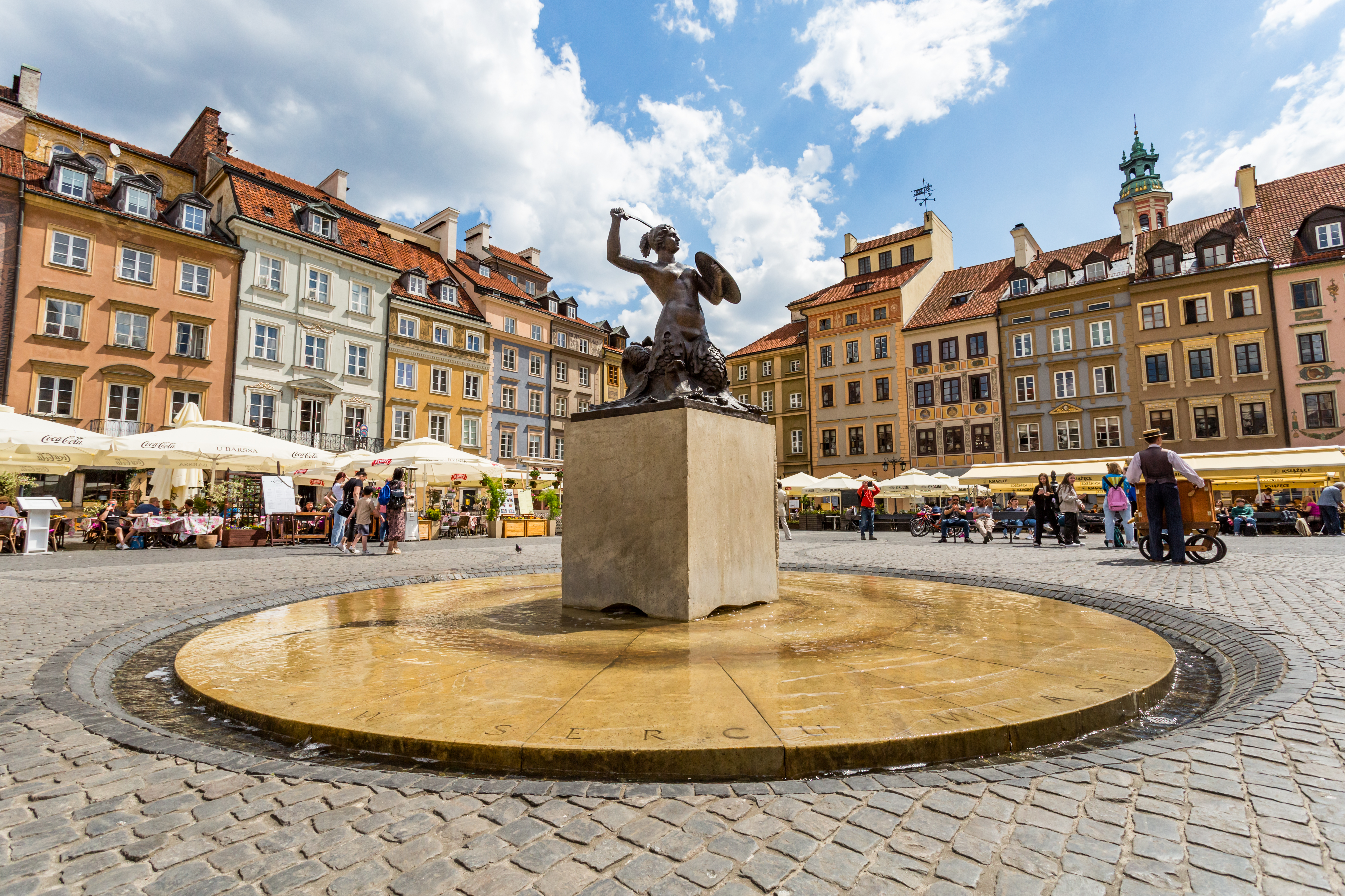 Warsaw's Old Town Market Square, with its mermaid fountain.