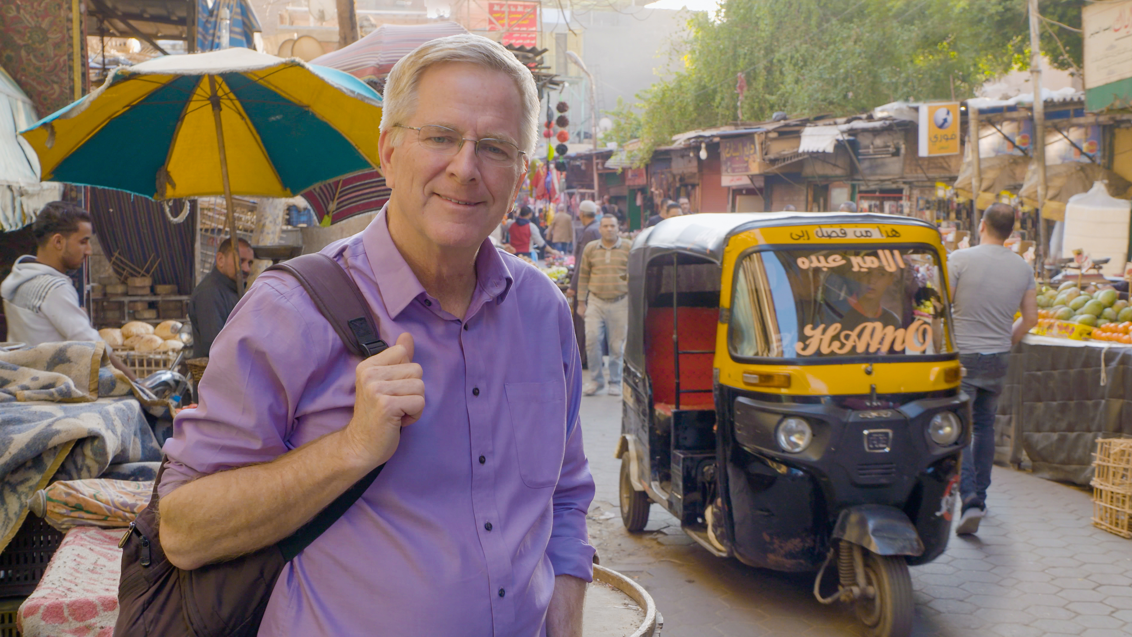 Teeming Cairo, straddling the Nile, is the capital of Egypt and one of the leading cities of the Muslim world. With 20 million people, greater Cairo pulses with energy. We explore the back streets on a tuk-tuk, drop in on a mosque, haggle with a gauntlet of eager merchants, bake some pita bread, help chisel a tombstone, marvel at King Tut’s gold, greet the ancient Sphinx, and climb into the center of the greatest pyramid.