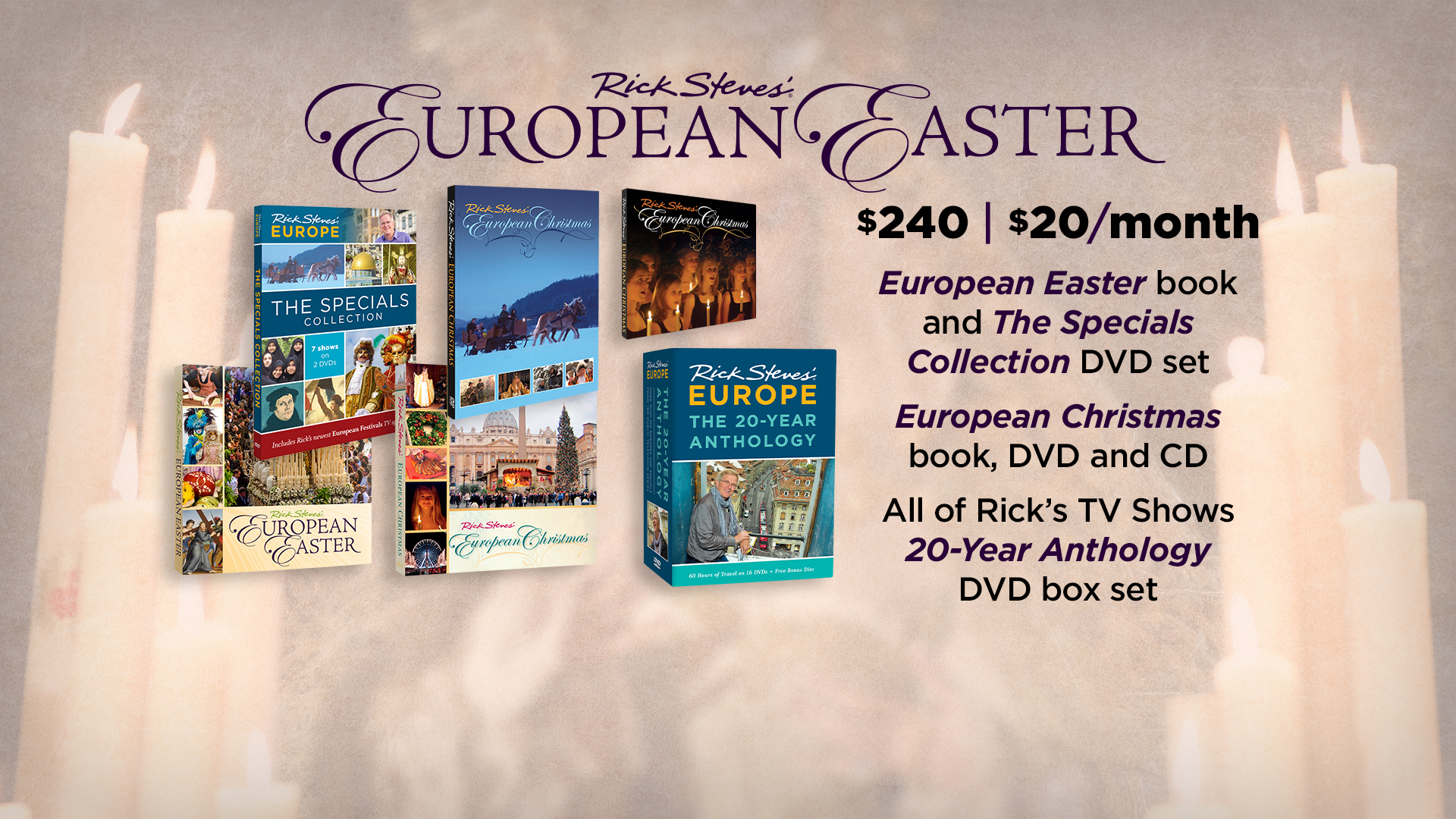 - Rick Steves' Europe: 20-Year Anthology DVD box set