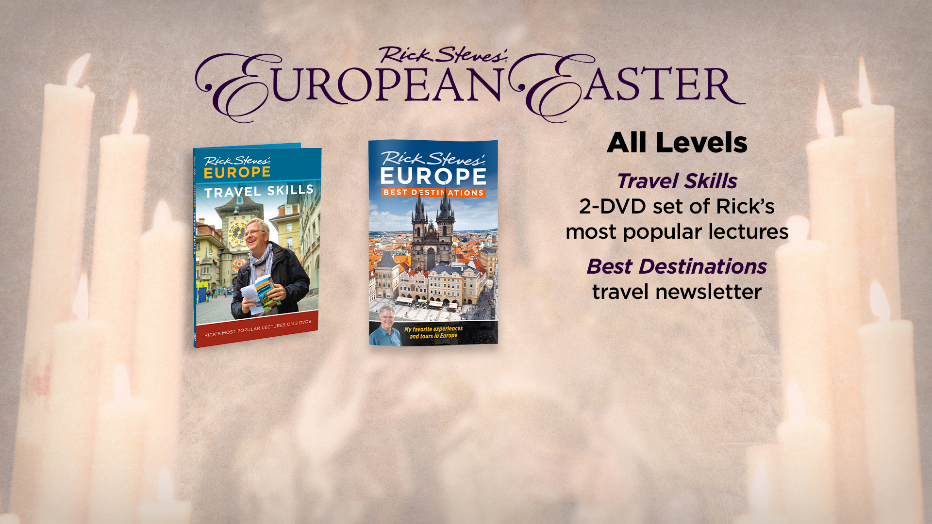 - Rick Steves Travel Skills DVD: In this two-disc DVD set filled with information-packed travel lectures, Rick shares how to travel smoothly and affordably through Europe with practical tips on planning a trip, getting around, finding accommodations, staying safe, packing right, and more! Plus, Rick presents the history of European art from medieval through modern times and teaches how to broaden your perspective through travel, plus the bonus extra: Rick Steves Tour Experience.