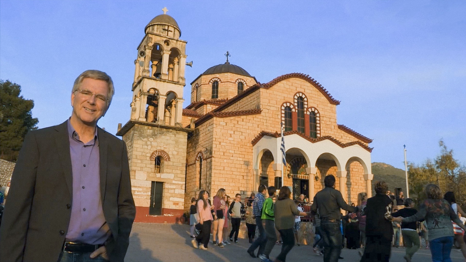 Rick at an Easter celebration in Nafplio, Greece. Download image.