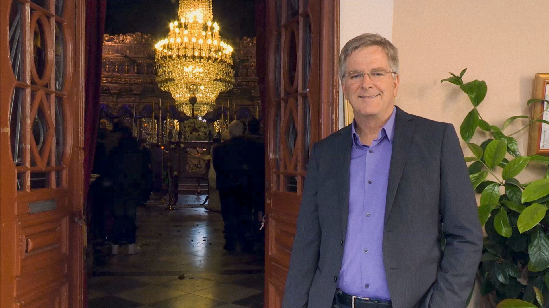 Rick at a Greek Orthodox church in Nafplio, Greece. Download image.