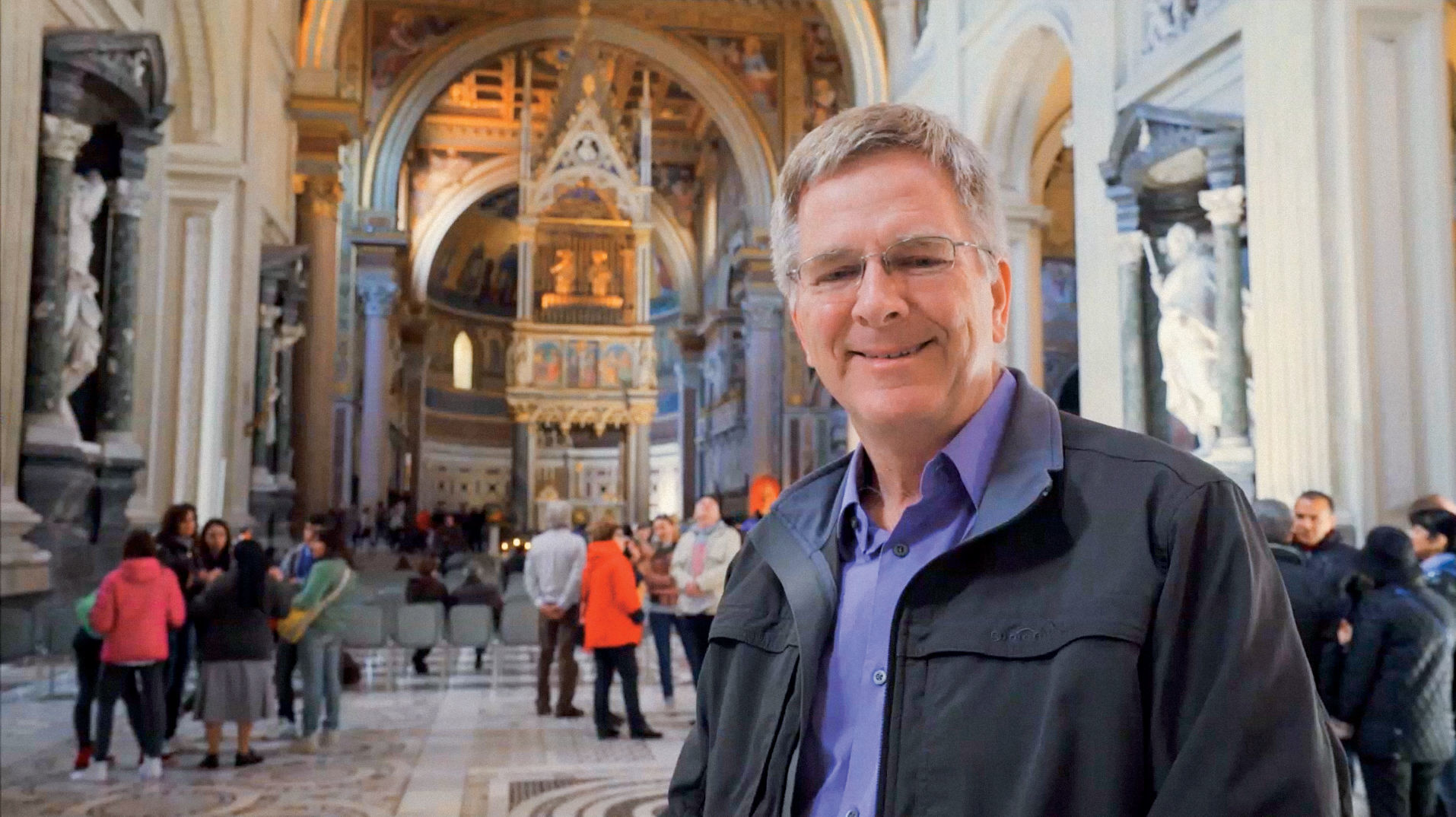 Rick at the Church of San Giovanni in Laterano in Rome. Download image.