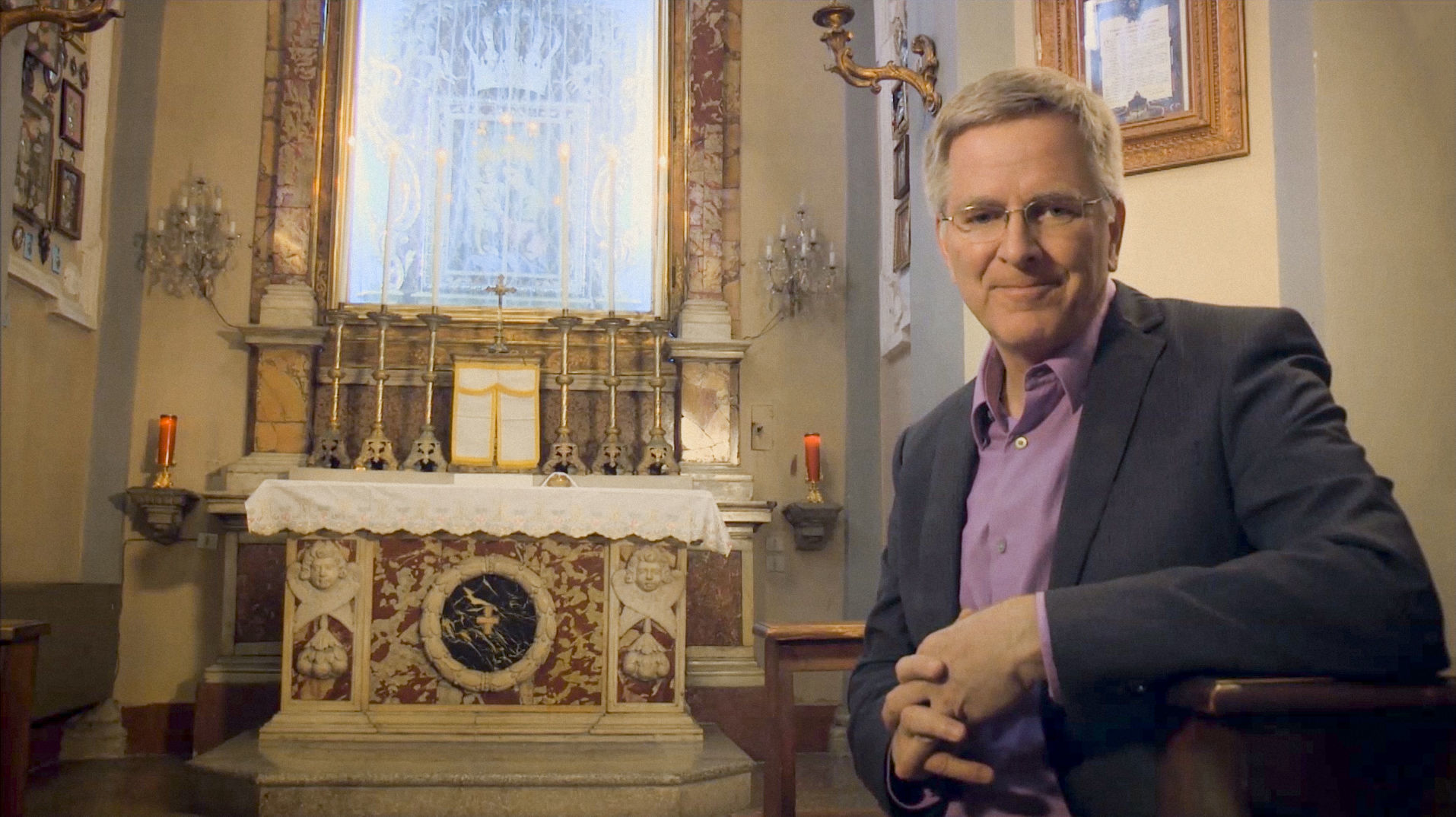 Rick at a church in Tuscany. Download image.