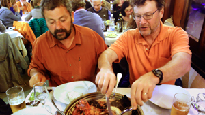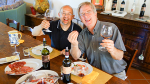 Rick enjoying a meal with guide Roberto Bechi. Download image