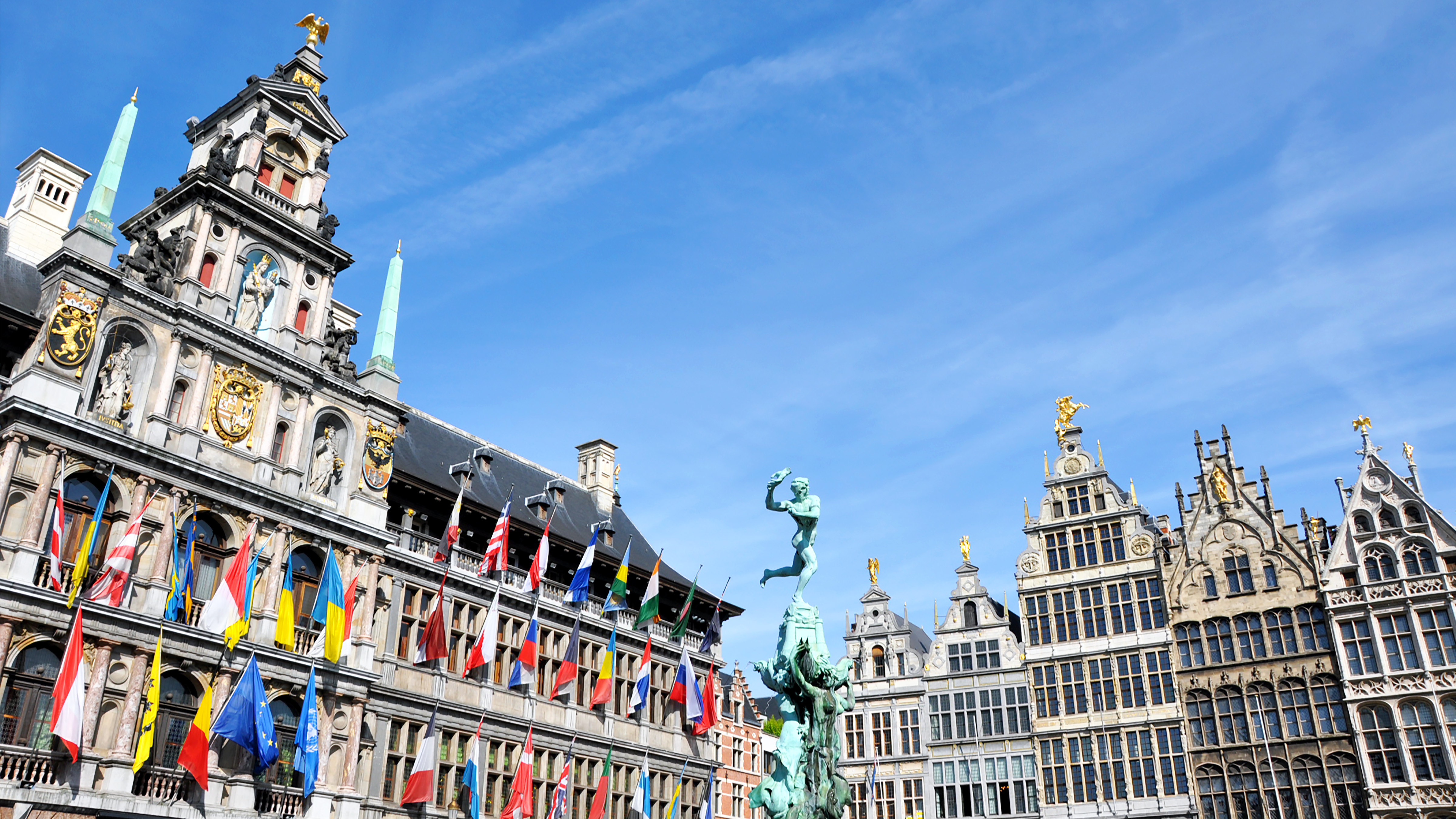 Fronting Antwerp's main square are its City Hall, adorned with gold coats of arms, and guild houses, each topped with a golden statue. (photo: Cameron Hewitt)