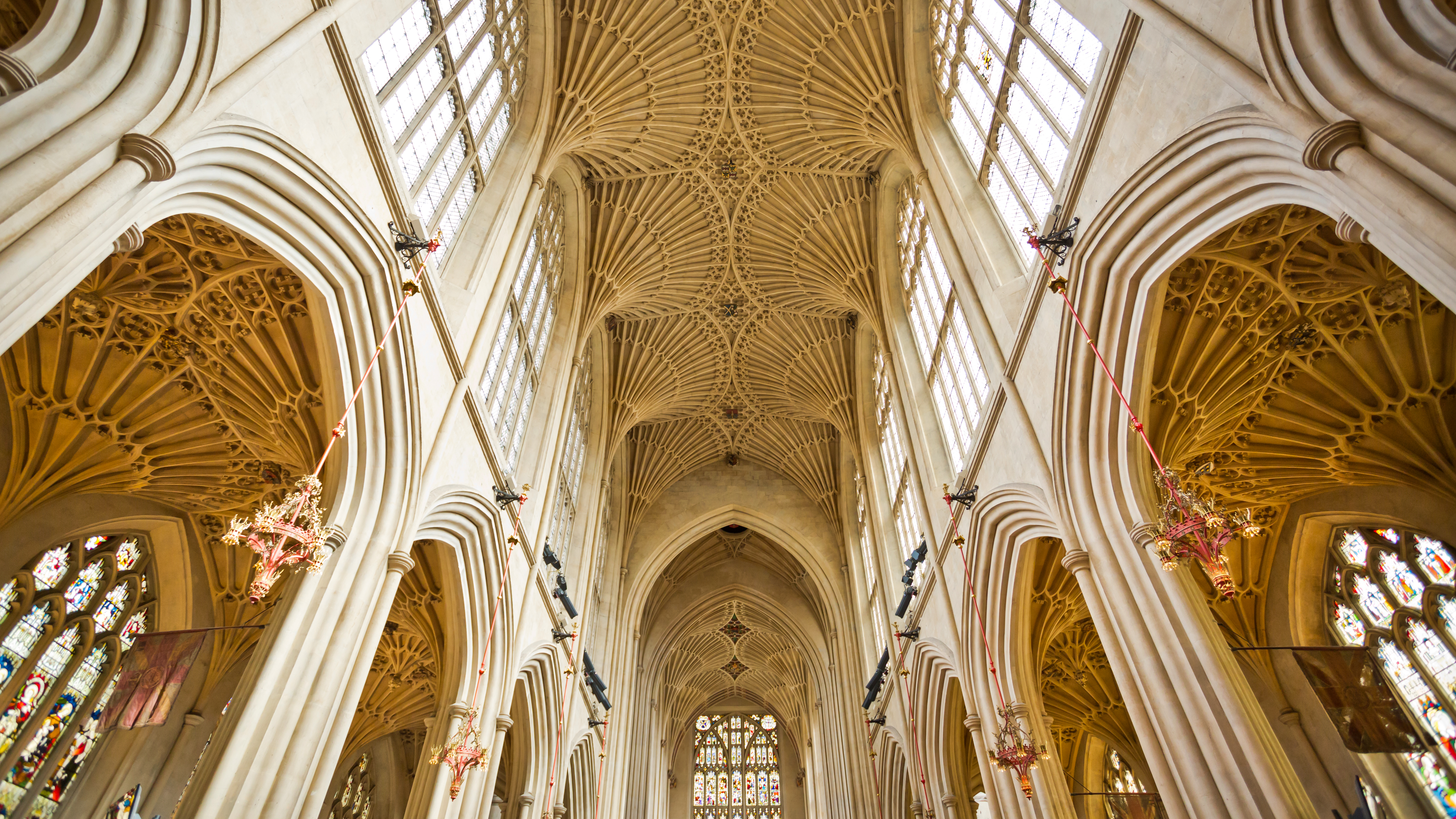 Glowing Bath stone columns sprouted honey-colored fan-vaulting fingers, while cherubic boys in white robes and ruffs (old-time ruffled collars) filled the nave with song — making it a ship of praise. The church was packed with townsfolk — proper and still. Sitting among them, I was no longer a tourist. The moment felt timeless. I gazed at scenes in the same windows that peasants sitting on these pews centuries ago had seen, searching for the same inspiration that they sought.