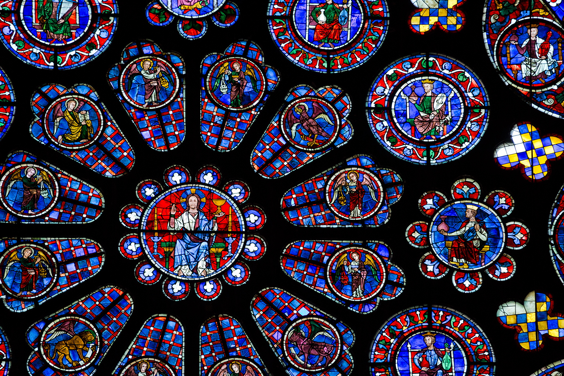 A fragment of Mary's venerated veil is still on display in the cathedral, kept in a gold frame — away from light and behind bulletproof glass. But today the cathedral is most famous for its stained glass and statues. Together, the glass and statues — created to inspire the illiterate medieval masses — tell the entire Christian story. In the "book of Chartres," as some have nicknamed the church, the text is the sculpture and windows, and its binding is the architecture.
