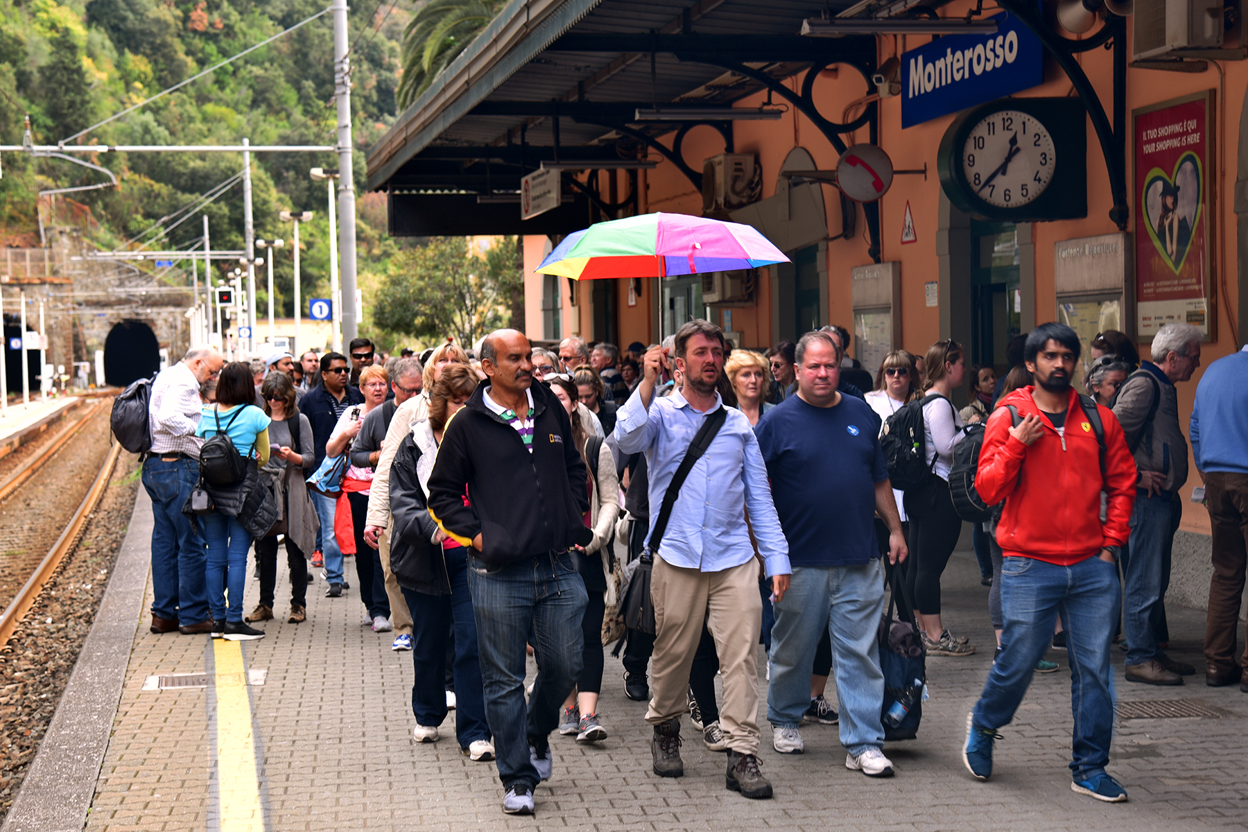 Tour groups can crowd Cinque Terre train platforms in peak season. (photo: Cameron Hewitt)