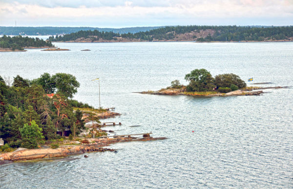 During the first few hours out of Stockholm, your ship passes through Stockholm's archipelago. The third hour features the most exotic island scenery — tiny islets with cute red huts and happy people. Going in this direction, I'd have dinner at the first sitting (shortly after departure) and be on deck for sunset.