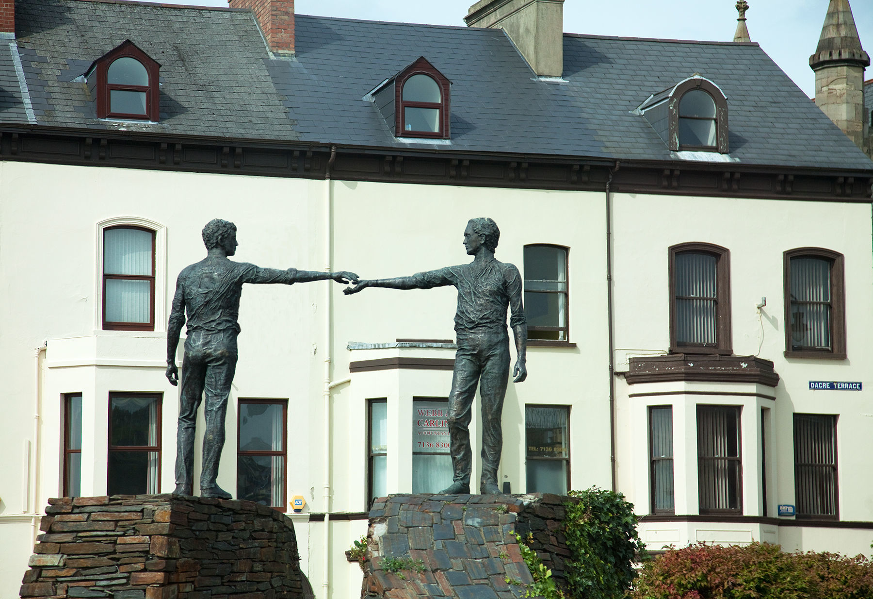 The sculpture "Hands across the Divide" epitomizes Derry's hopes for a peaceful future. (photo: Dominic Arizona Bonuccelli)