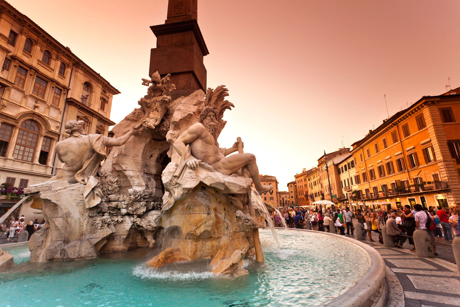 I wander over to the always-thriving Piazza Navona, with its gushing Bernini fountains and famous gelateria. As usual, it's busy with families out for a stroll, street musicians, artists, fire-eaters, local Casanovas, immigrants selling the latest plastic tourist trinket, and people screwing their forefinger into their cheeks. That's the Italian sign for "yummy"…like when you're eating the tartufo chocolate ice cream treat that several of the square's cafés claim to have perfected. Piazza Navona's outdoor cafés are a worthy splurge if you've got time to sit and enjoy Italy's human river.