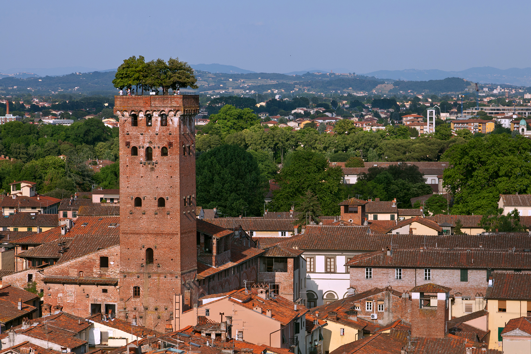 In its heyday, Lucca packed 70 churches and over 100 towers within its walls. Each tower was the home and private fortress of a wealthy merchant family. Tower interiors were single rooms stacked atop each other: shop, living room, and then the kitchen, all connected by exterior wooden staircases. Rooftops usually served as vegetable gardens, with trees providing shade. Later, the wealthy city folk moved into the countryside, trading away life in their city palazzos to establish farm estates and fancy villas.