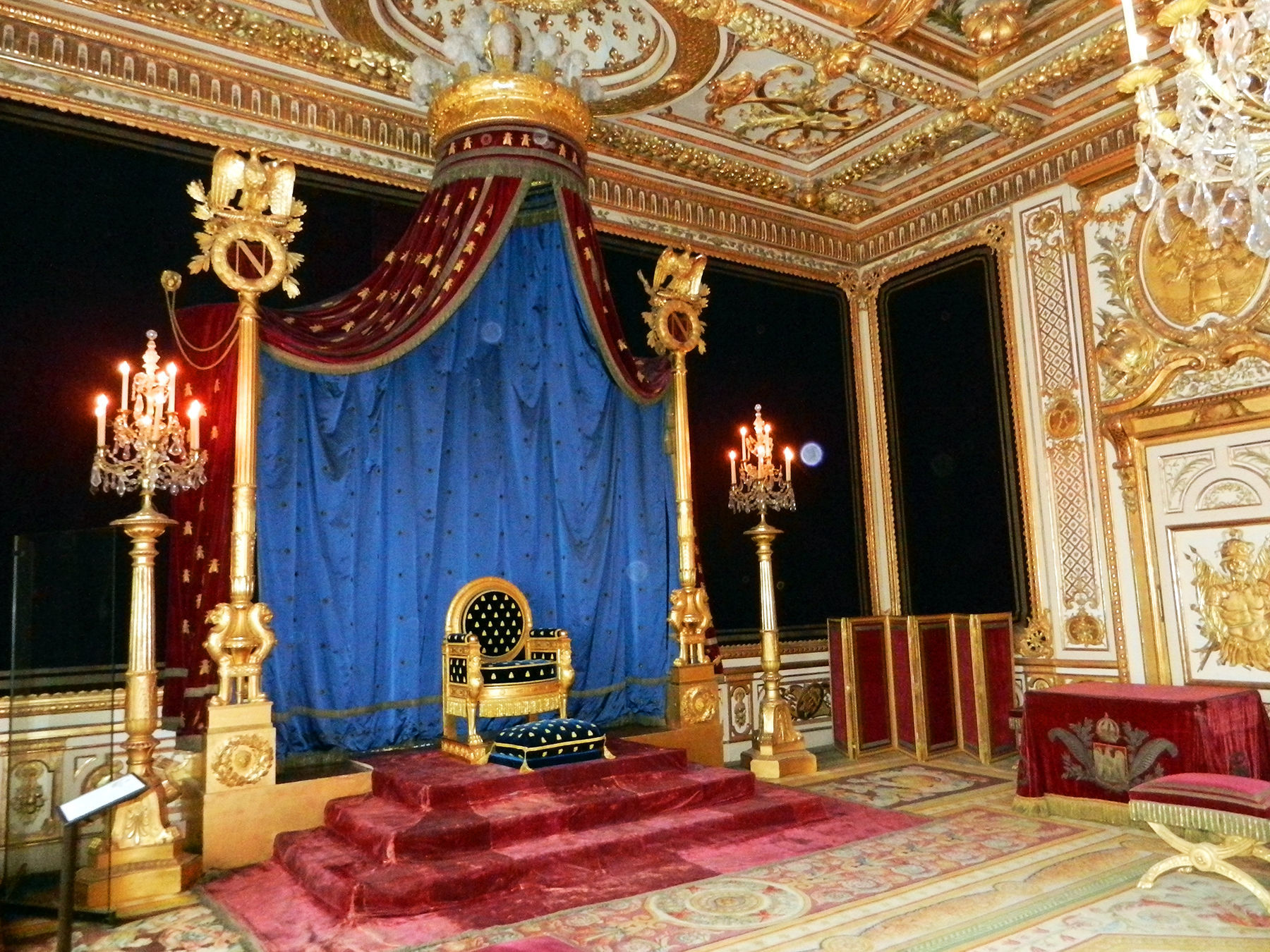 Grand paintings portray the emperor and his first wife, Josephine, after their coronation. Napoleon aspired to create his own family dynasty, but Josephine was too old to have children. To turn his Corsican blood blue, he divorced Josephine and married a Habsburg. You'll see a portrait of his second wife, Empress Marie-Louise, who provided what he called "a royal womb."