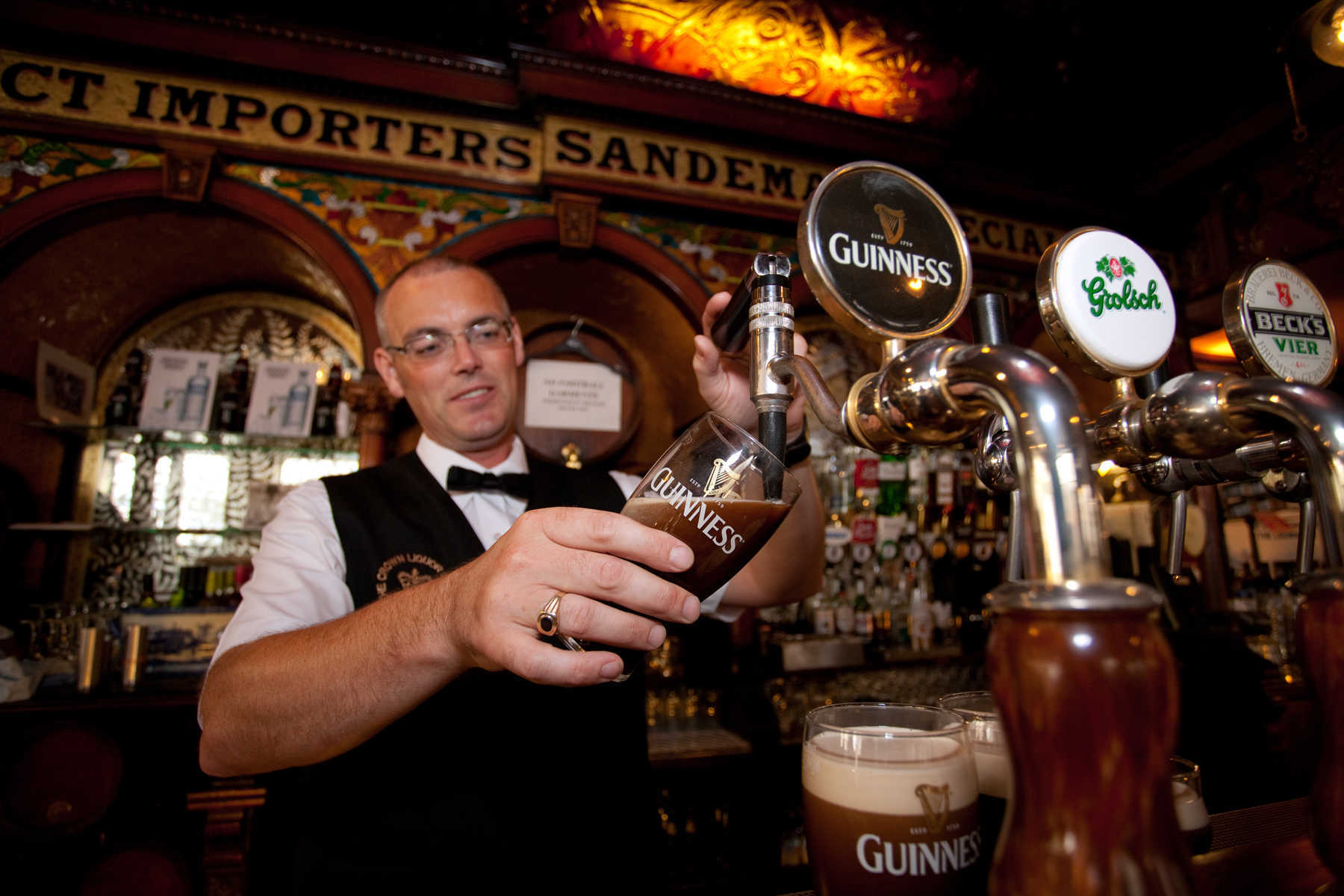 But the king of beers is still Guinness. This is where Arthur Guinness began brewing his famous stout in 1759, and to this day, his brewery still occupies several city blocks along the river. A huge exhibit fills the old fermentation plant like a shrine. A tall beer-glass-shaped atrium — 14 million pints big — soars past several floors of exhibitions to the Gravity Bar, which gives visitors a commanding 360-degree view of Dublin. Despite competition from other brews, Guinness still rules: When you say "a pint, please" in a Dublin pub, you'll get Guinness.