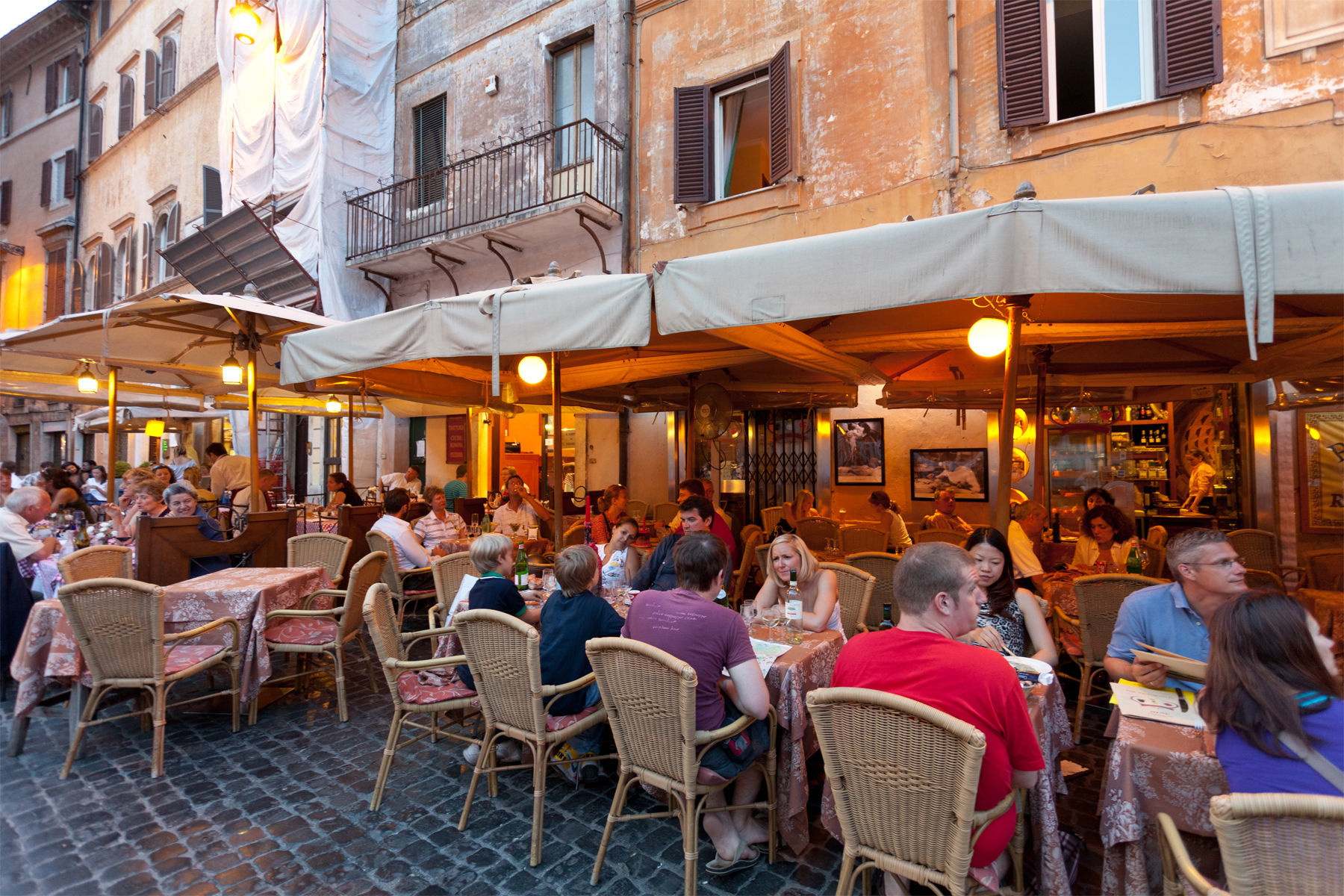 With the room still singing, the elegant older couple at the next table looks around. Seeming pleased that the three of us — a generation behind hers — are enjoying this traditional Roman moment, the woman says, "Bella."