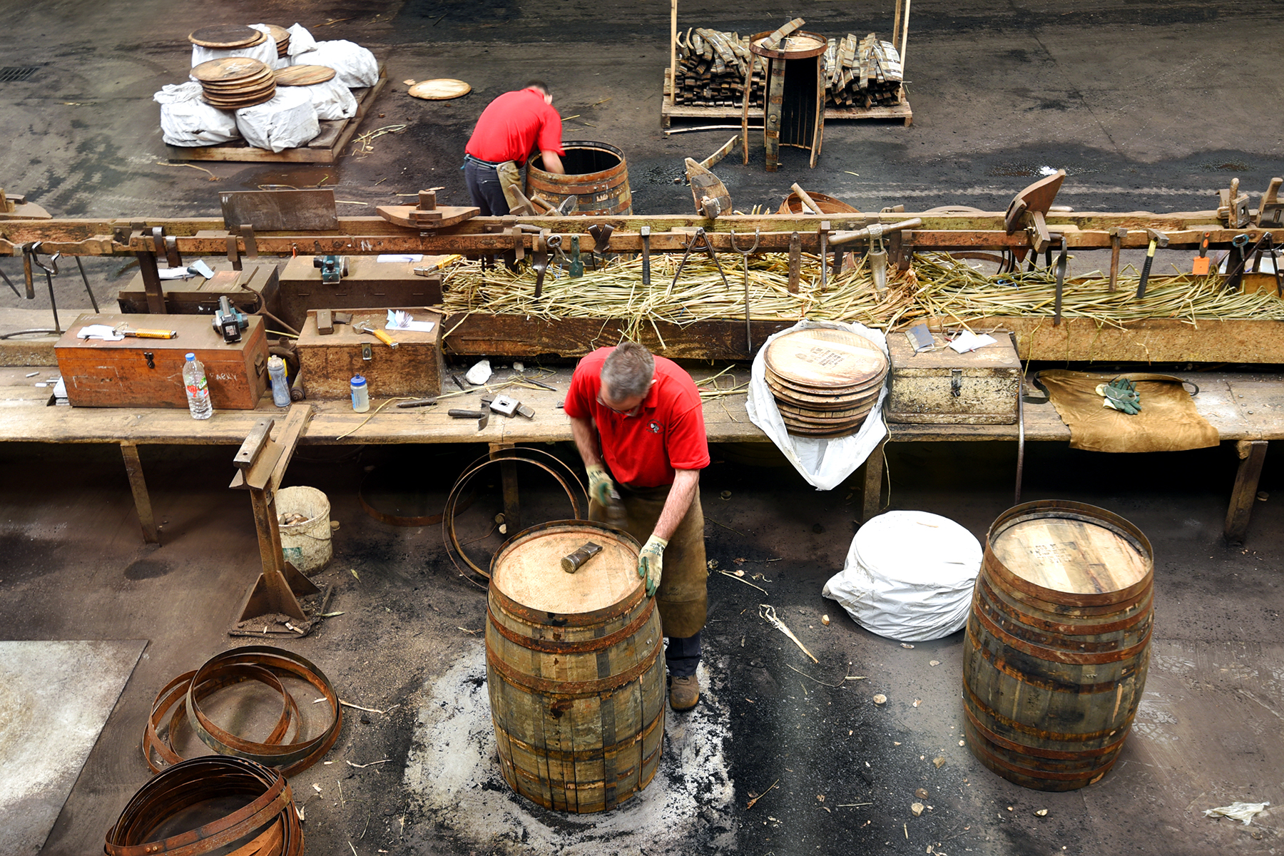 Workers at Scotland's Speyside Cooperage fashion oak casks for aging Scotch whisky. (photo: Cameron Hewitt)