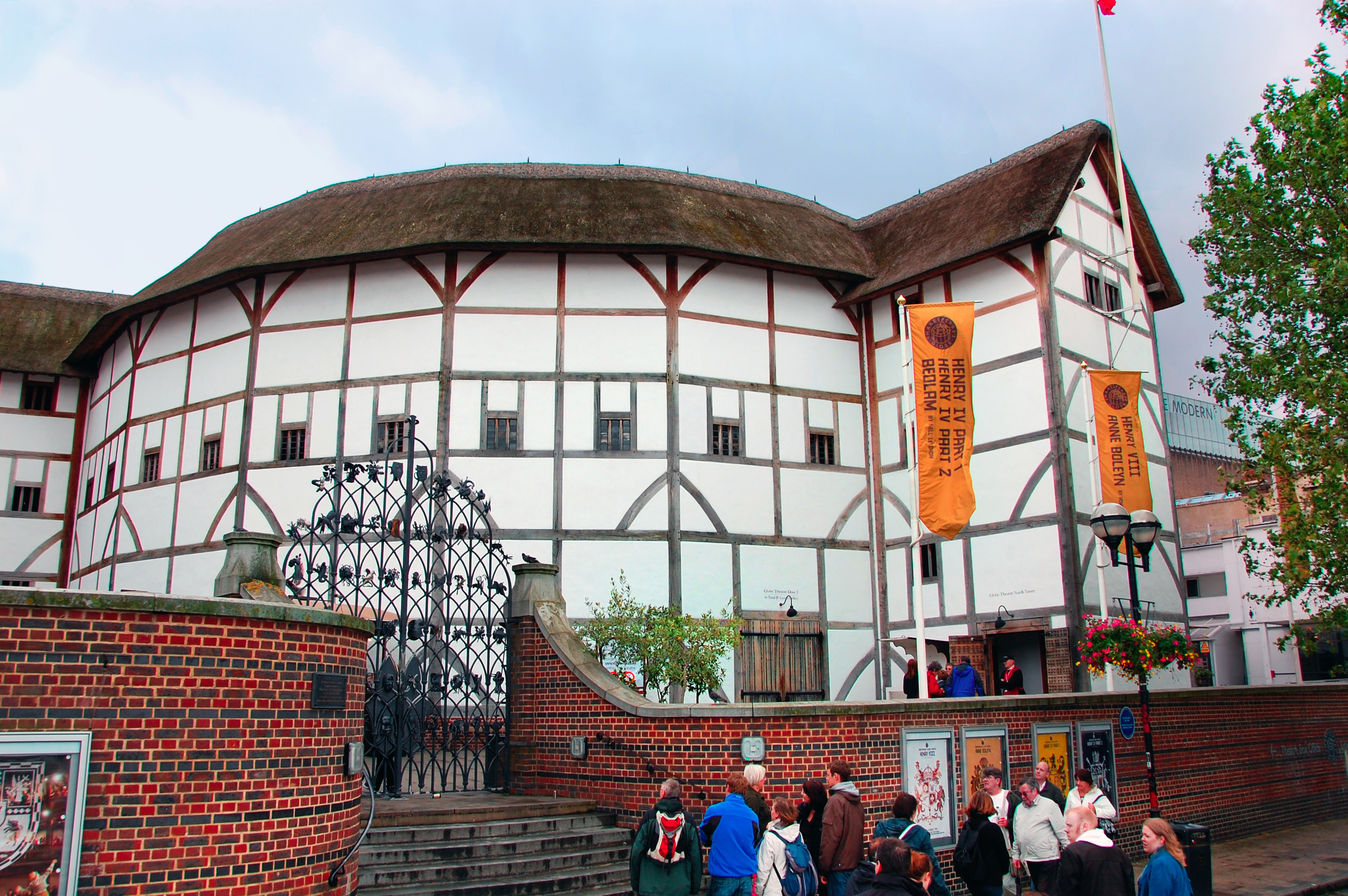 The thatch-roofed, open-air Globe theater presents Shakespearean plays much as the writer intended — under the sky with no amplification. (photo: Cameron Hewitt)