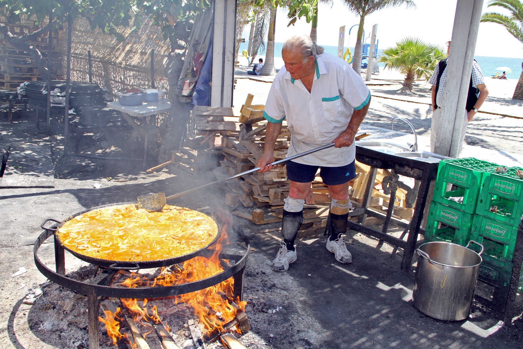 In Nerja, Spain: Chiringuito Ayo is famous for its character of an owner and its beachside all-you-can-eat paella feast at lunchtime. For decades, Ayo — a lovable ponytailed bohemian who promises to be here until he dies — has been feeding locals. The paella fires get stoked up at about noon. Grab one of many tables under the canopy next to the rustic, open-fire cooking zone, and enjoy the Burriana Beach setting with a jug of sangria.