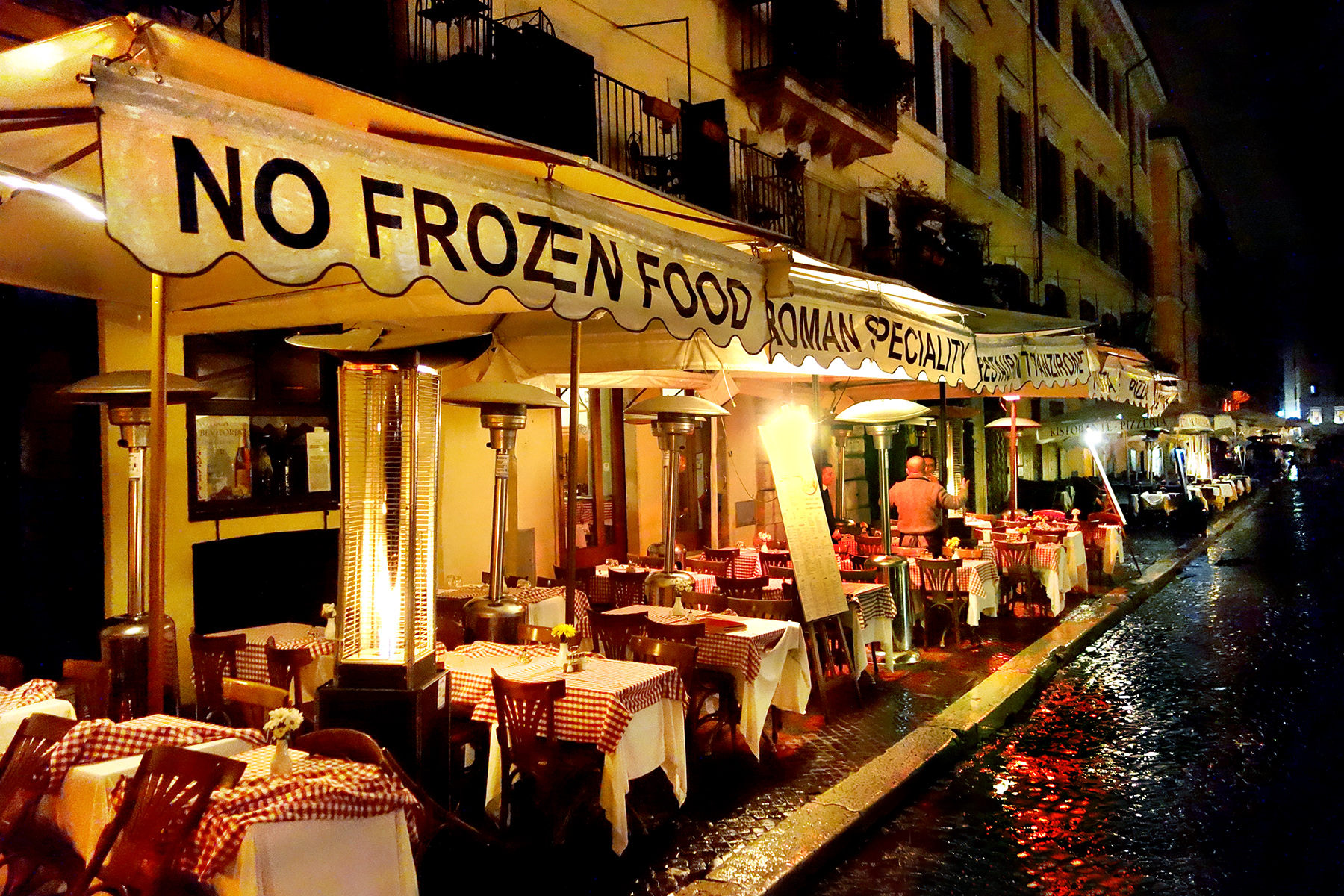 Don't dine anywhere with a menu printed in five languages, and a big, if hard-to-believe, promise in English: "No Frozen Food." (photo: Rick Steves)
